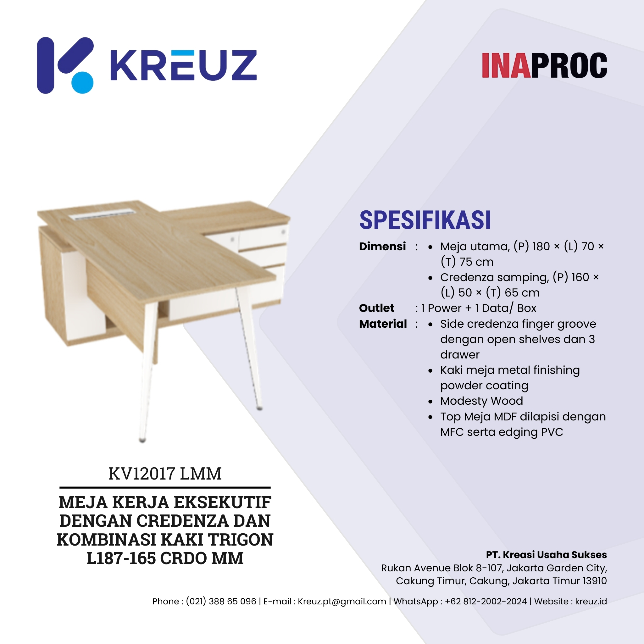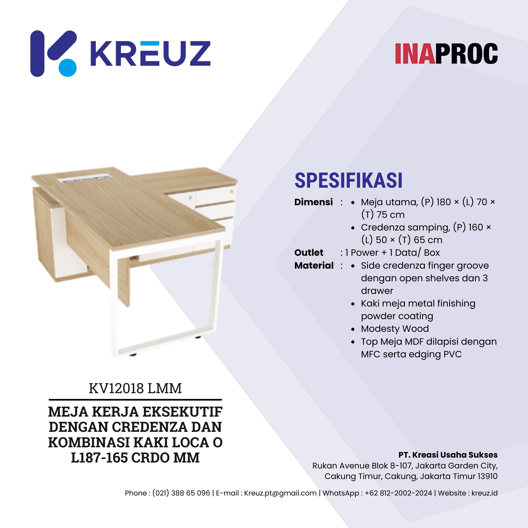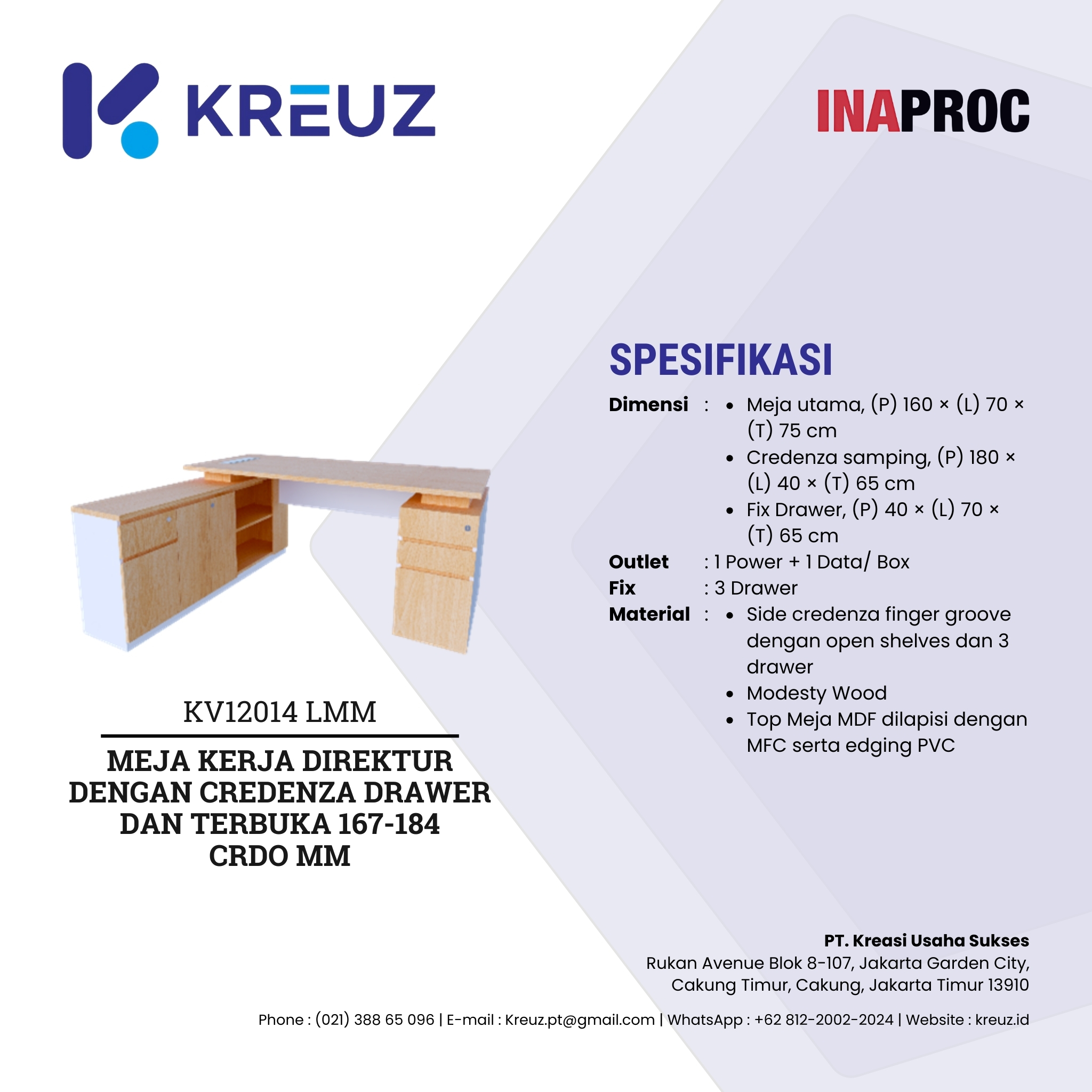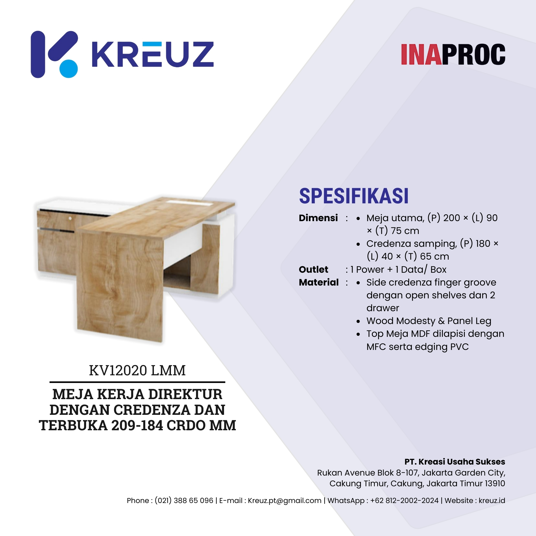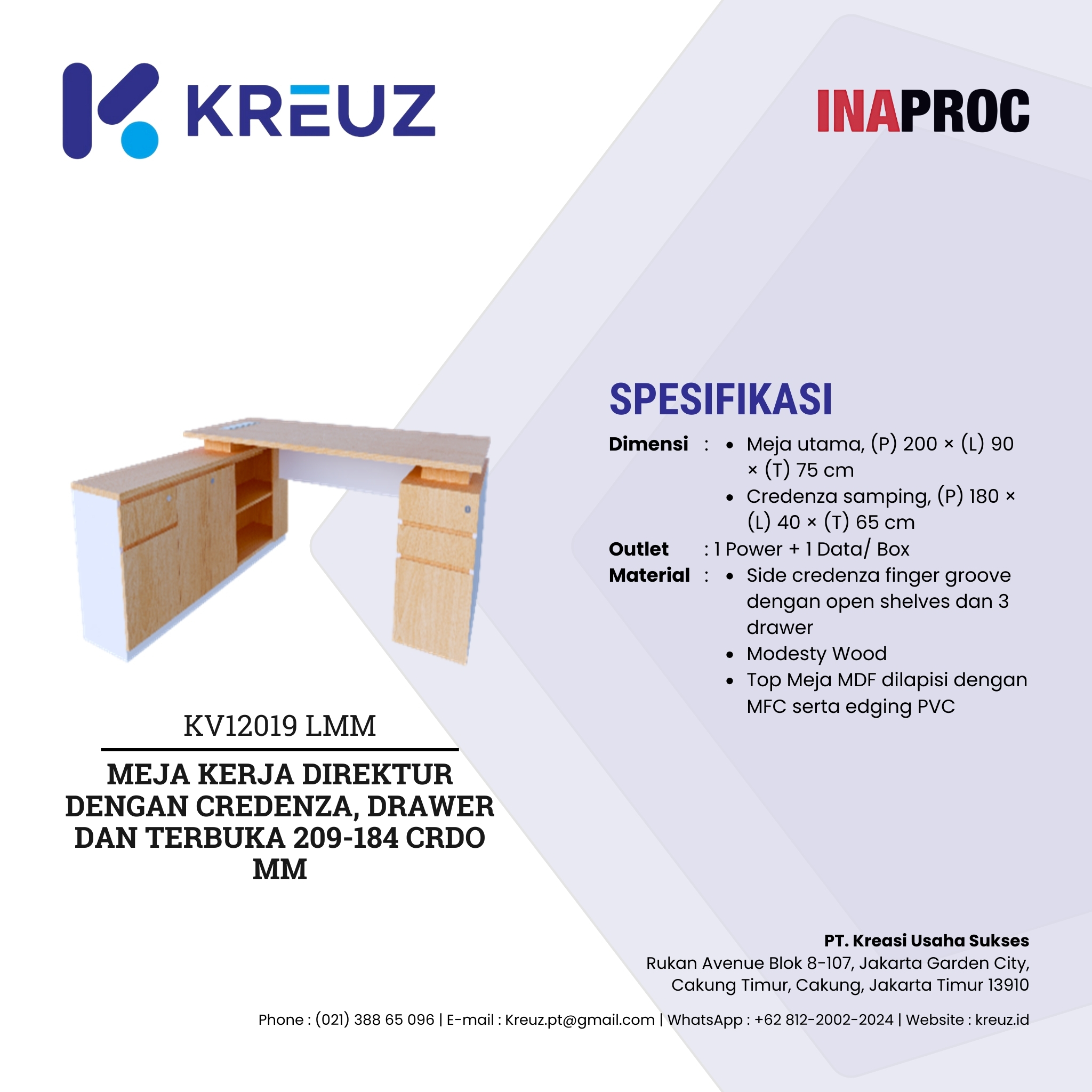 KREUZ Meja Kerja Direktur Dengan Credenza Drawer Dan Terbuka 167-184 CRDO MM - KV12014 LMM