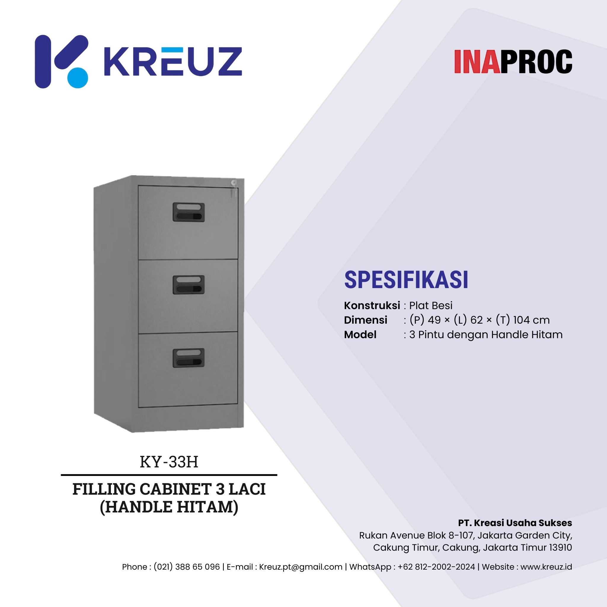 KREUZ Filing Cabinet 3 Laci (Handle Hitam) - KY-33H
