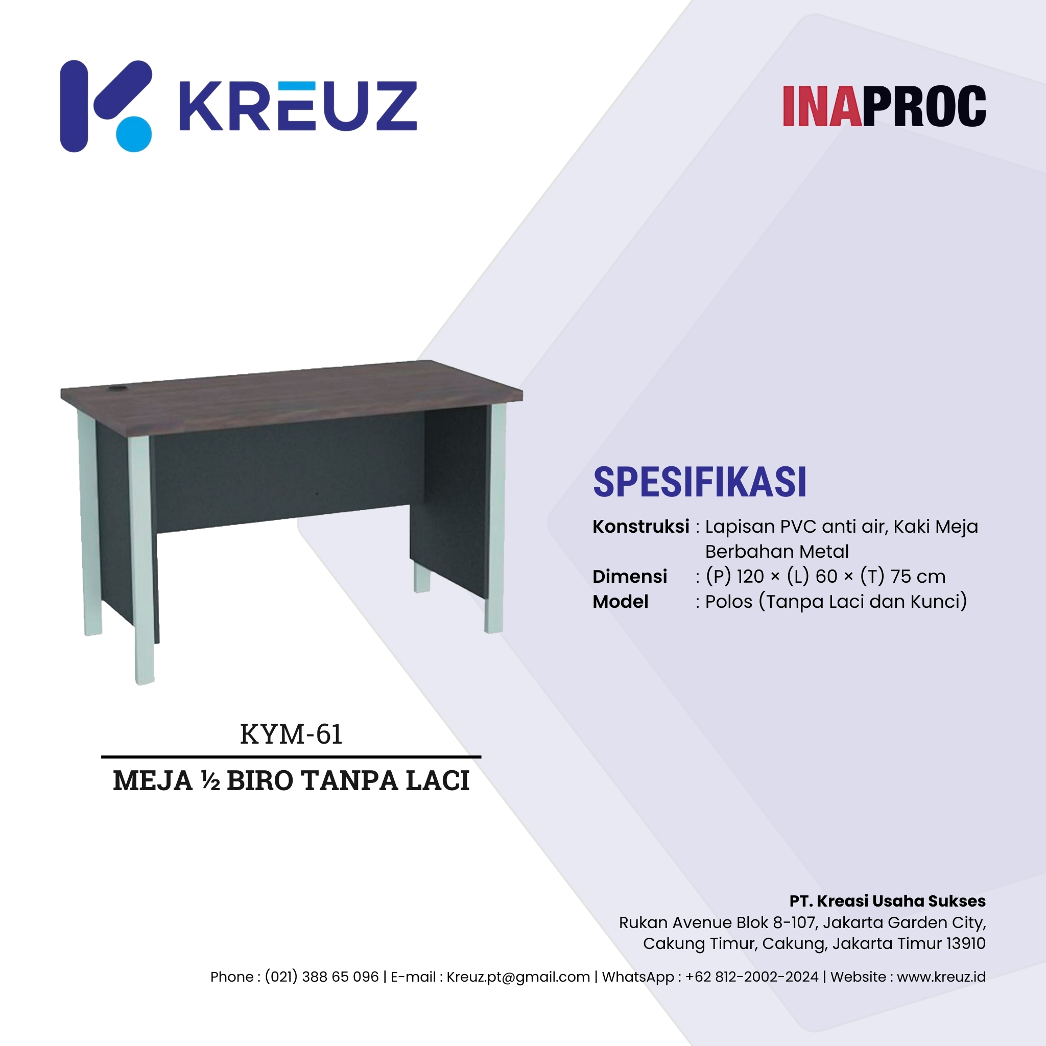 KREUZ Meja 1/2 Biro Tanpa Laci - KYM-61