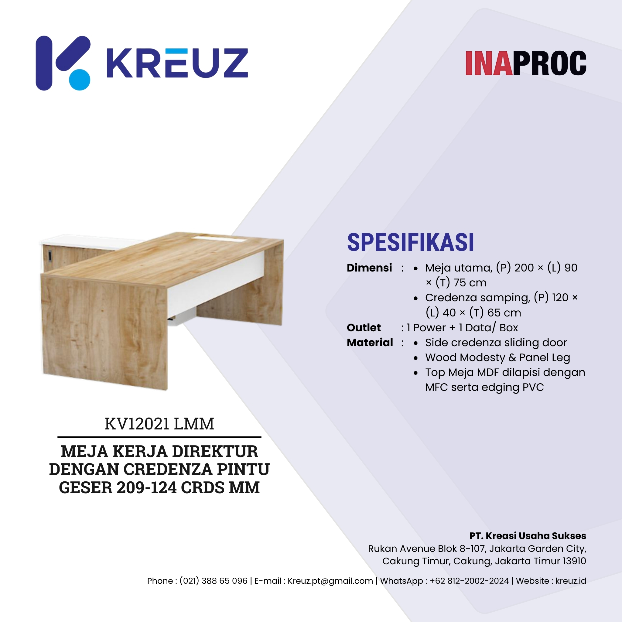 KREUZ Meja Kerja Direktur Dengan Credenza Pintu Geser 209-124 CRDS MM - KV12021 LMM