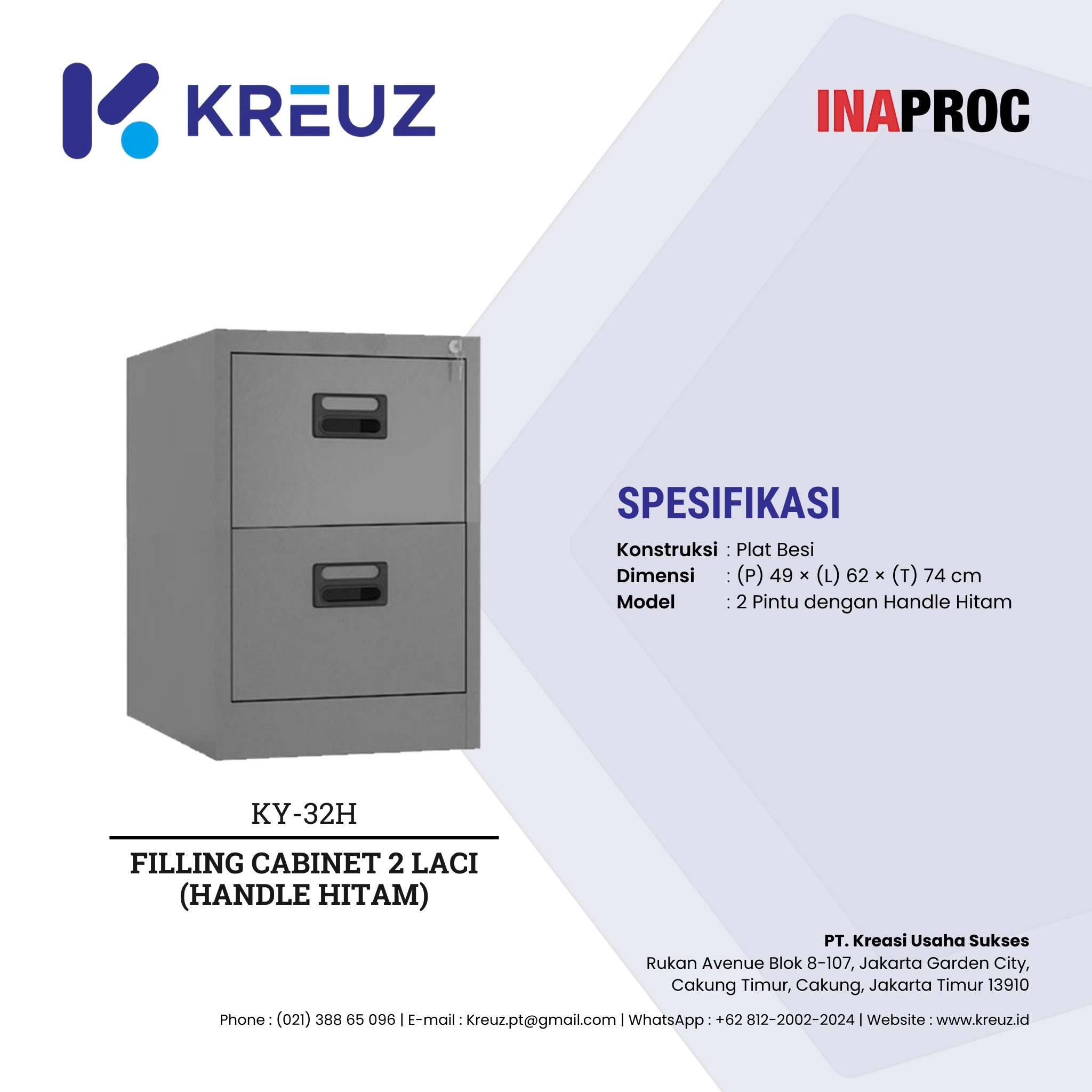 KREUZ Filling Cabinet 2 Laci (Handle Hitam) - KY-32H