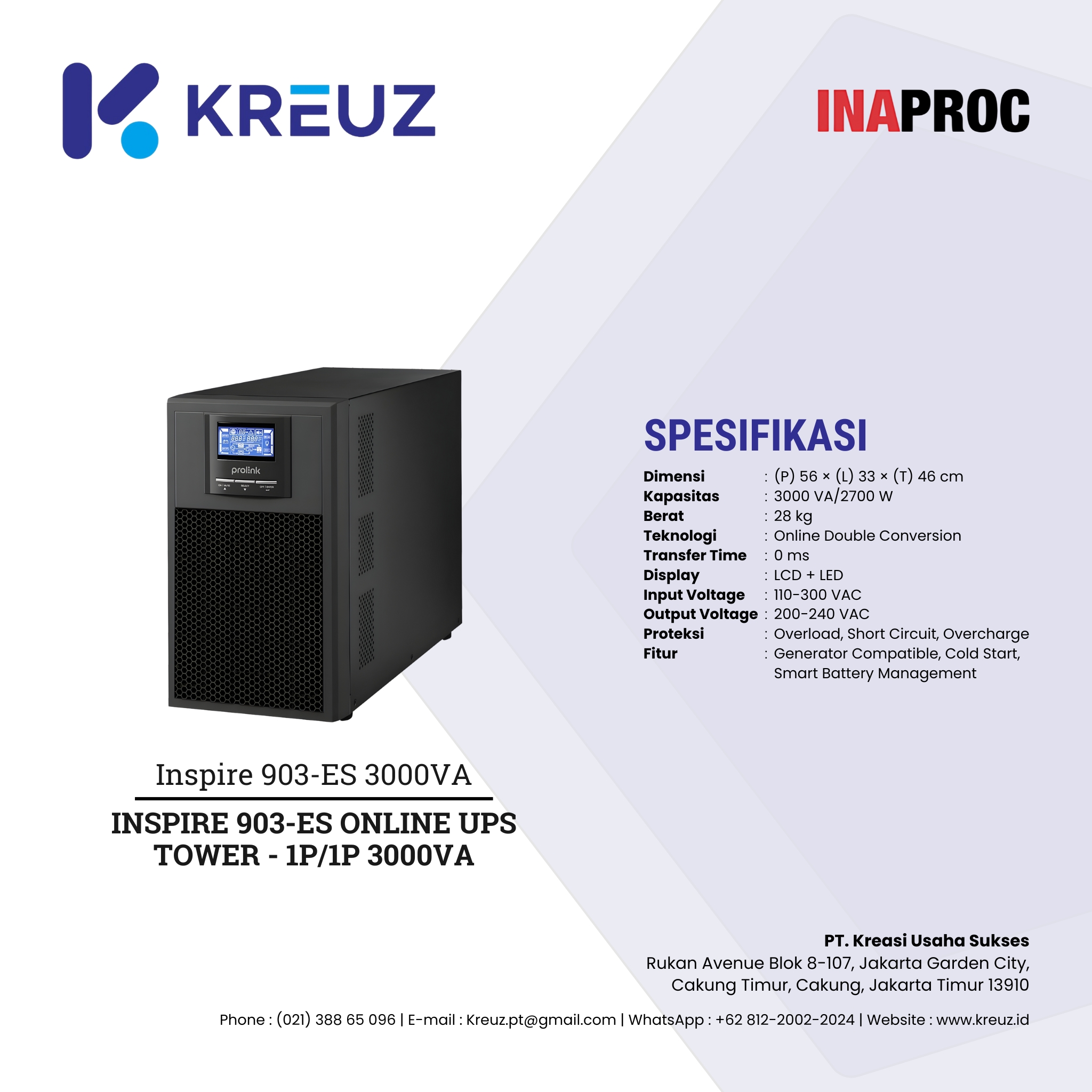 PROLINK Inspire 903-ES Online UPS Tower - 1P/1P 3000VA - INSPIRE 903-ES 3000VA
