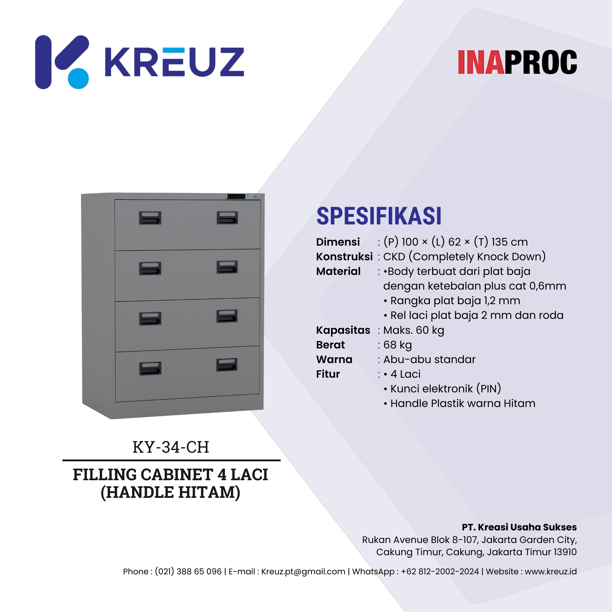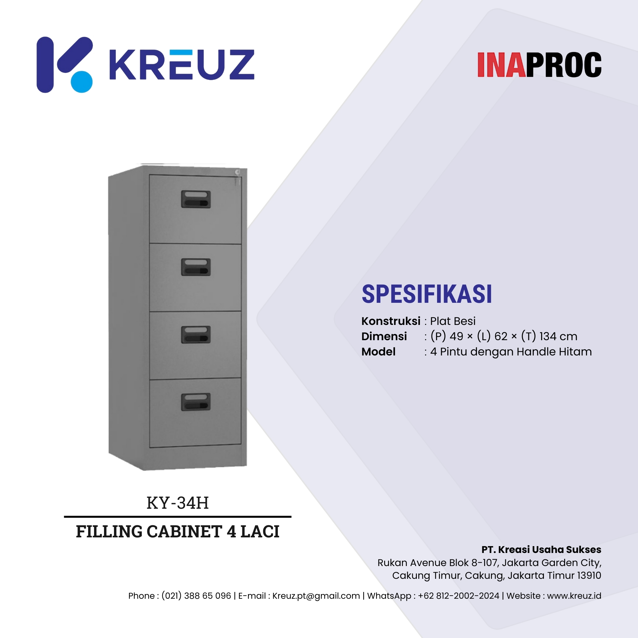 KREUZ Filing Cabinet 4 Laci (Handle Hitam) - KY-34H