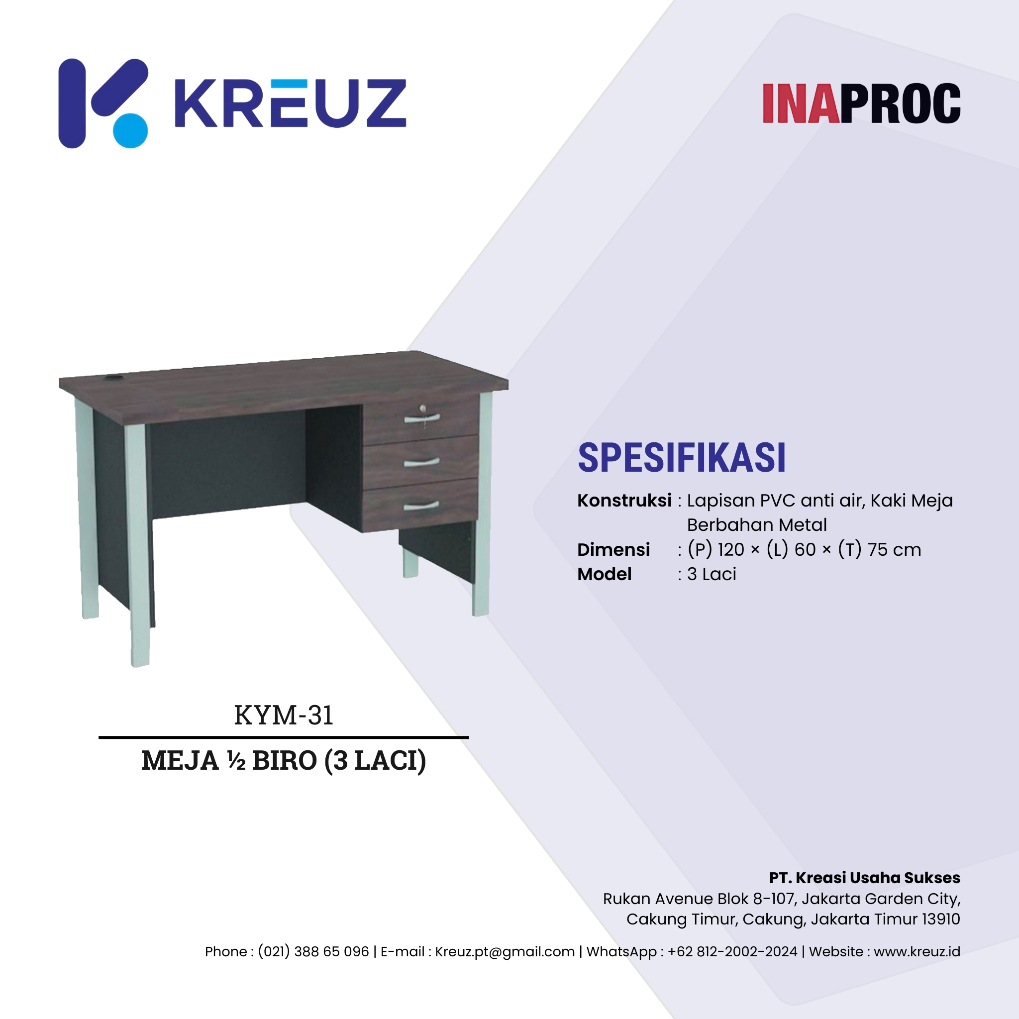KREUZ Meja 1/2 Biro (3 Laci) - KYM-31