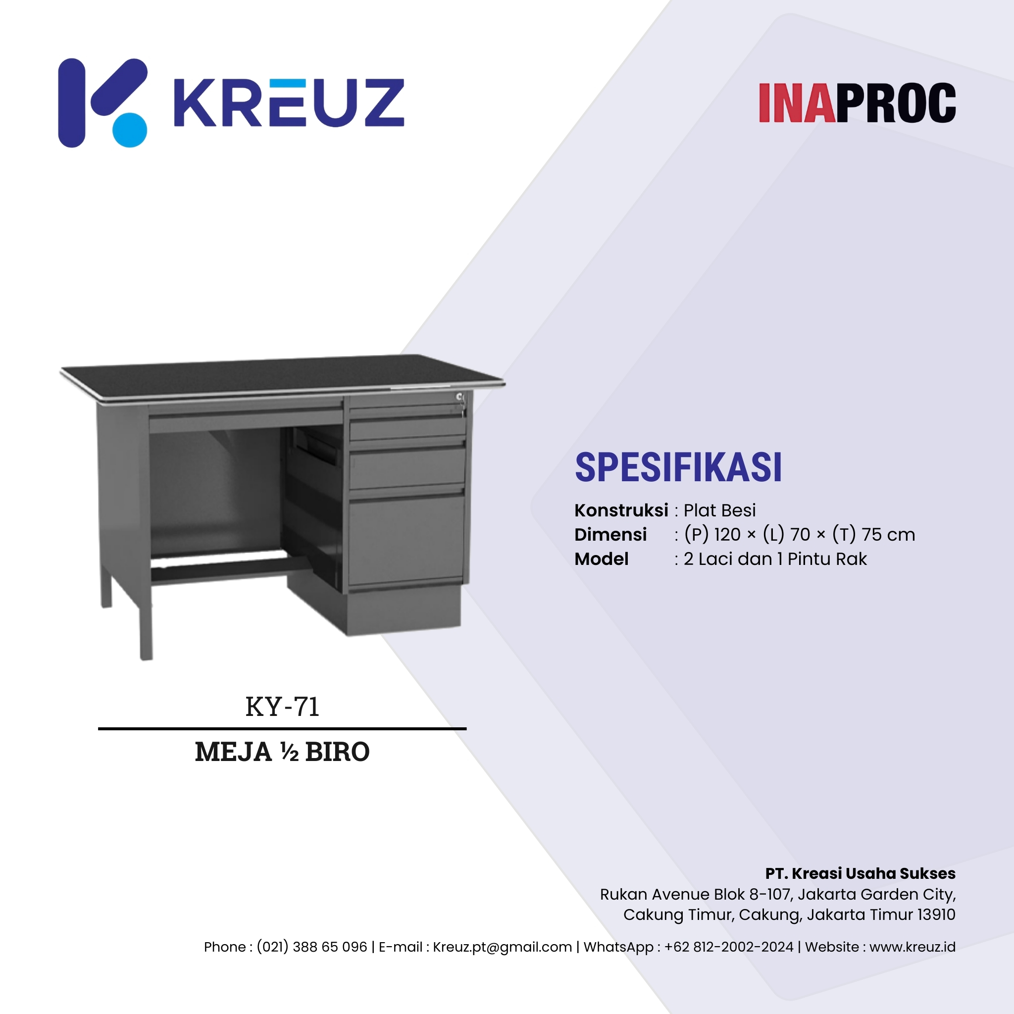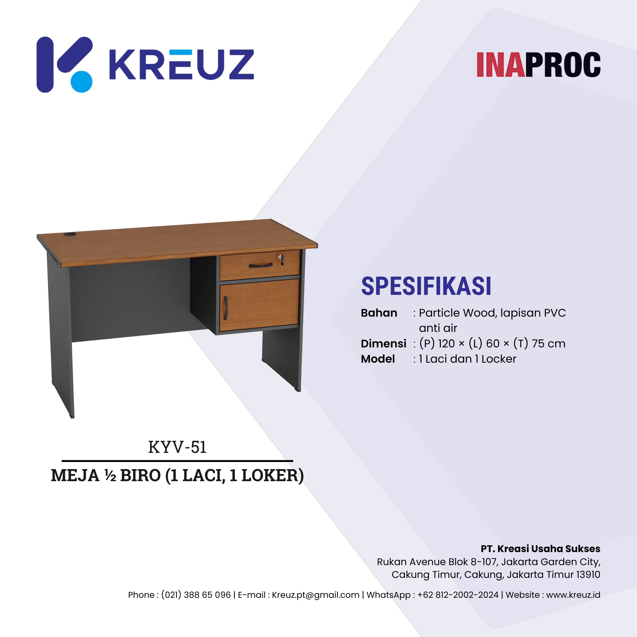 KREUZ Meja 1/2 Biro (1 Laci, 1 Loker) - KYM-51